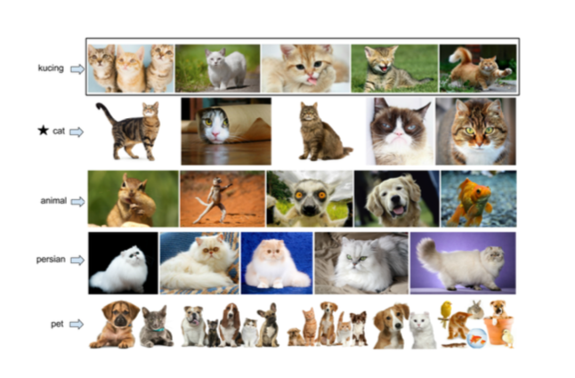 I was part of a multi-year project led by Brendan Callahan , in collaboration with John Hewitt and Derry Wijyaya, supervised by Chris Callison-Burch. In this project, we introduce a new large scale multilingual corpus of labeled images collected to facilitate research in learning translations via visual similarity. We have collected 100 images for up to 10,000 words in each of 100 foreign languages, and images for each of their translations into English. In addition, we collected the text from the web pages where each of the images appeared. Our dataset contains 35 million images and web pages, totaling 25 terabytes of data. Finally, we released vectors representation of each image extracted using Scale Invariant Feature Transform (SIFT) features, color histograms and convolutional neural network (CNN) features from AlexNet.