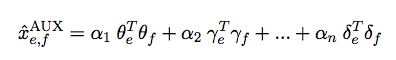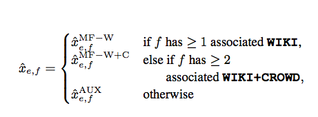 so that each xe,fMF = pe qf. We solve the cold-start problem alluded above by computing an auxiliary value xe,fAUX using other features associated with each word: