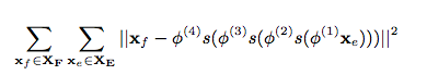 where xe and xf are source and target words.