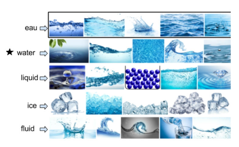 - xe,fAUX-VIS Visual representation of words: We use a large multilingual corpus of labeled images to obtain the visual representation of the words in our source and target languages. The corpus contains 100 images for up to 10k words in each of 100 foreign languages, plus images of each of their translations into English. For each word, we use 10 images from the dataset and extract feature representation using a four layer neural net W = (φ(1), φ(2), φ(3), φ(4)) trained with the objective: